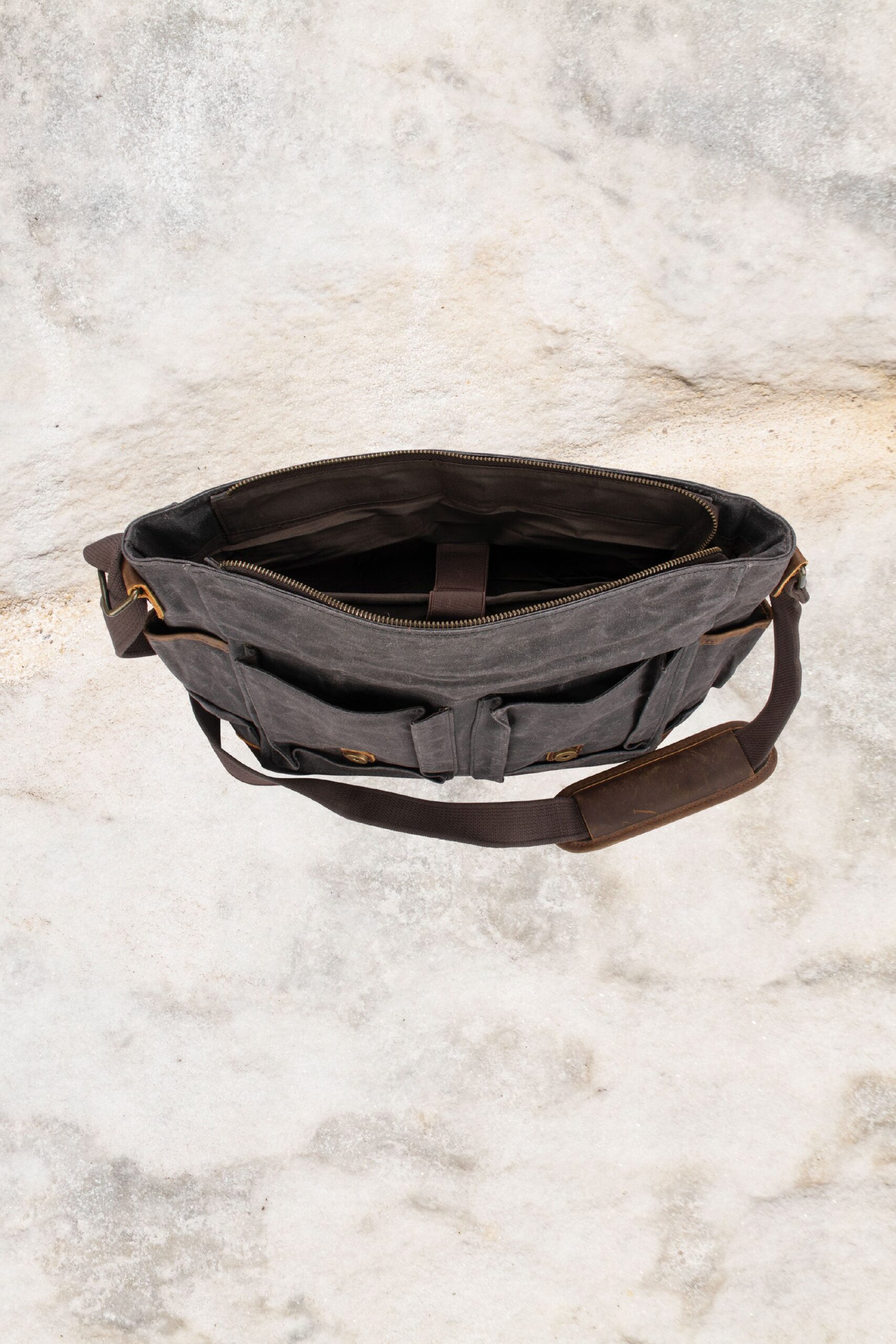 The Burke & Wills Lawson Messenger Bag combines style and functionality with its durable 12oz waxed canvas fabric construction and classic leather trim. Featuring multiple storage pockets, it offers ample space to organize your everyday essentials. The laptop pocket provides extra protection for your device, while the adjustable shoulder strap ensures comfort during wear. A convenient tab at the back allows you to slide the bag onto a luggage handle, making it a perfect travel companion. Whether for work or travel, this versatile bag keeps you organized and stylish on the go.