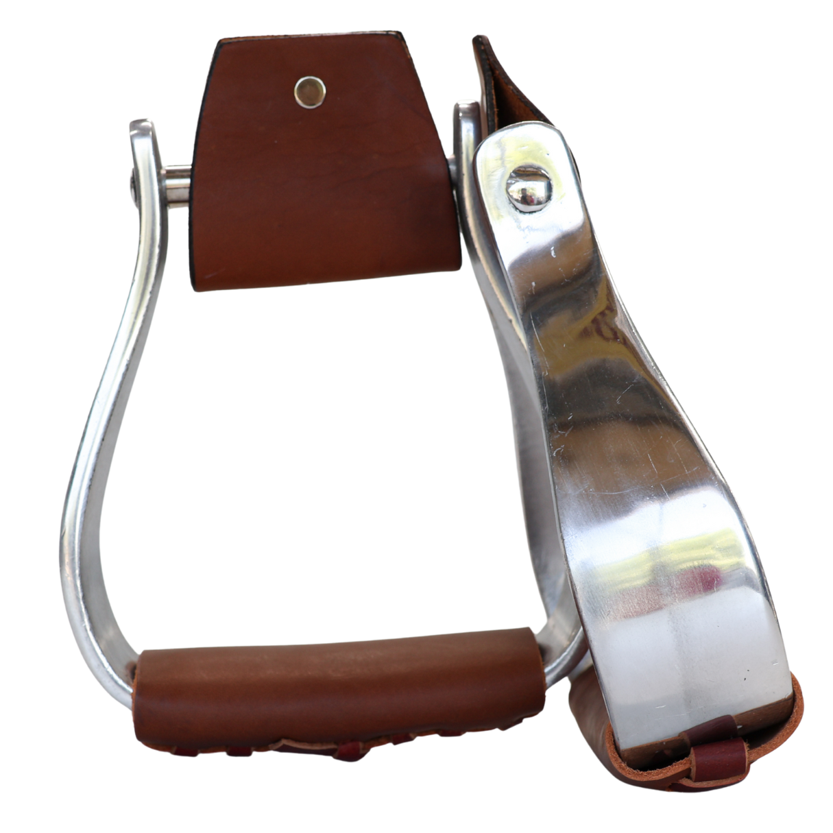 Polished cast aluminium with padded leather foot pad.