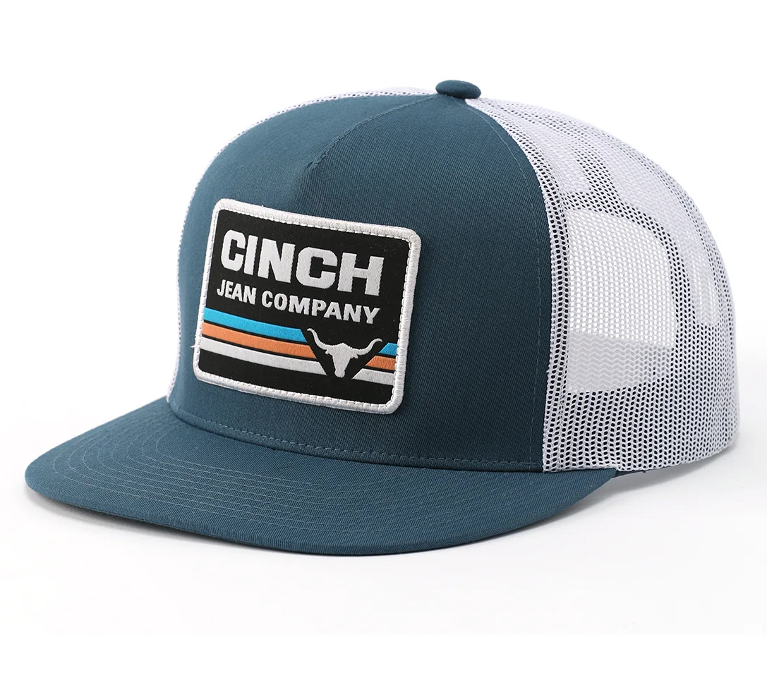 Cinch FLEXFIT Trucker Cap with woven logo patch, 5 panels, high profile & snap closure.