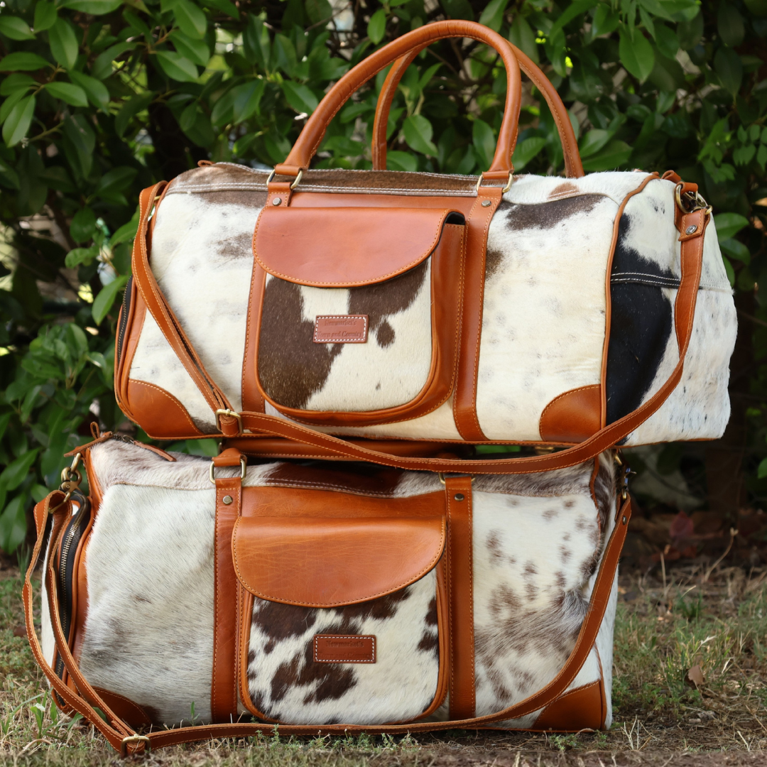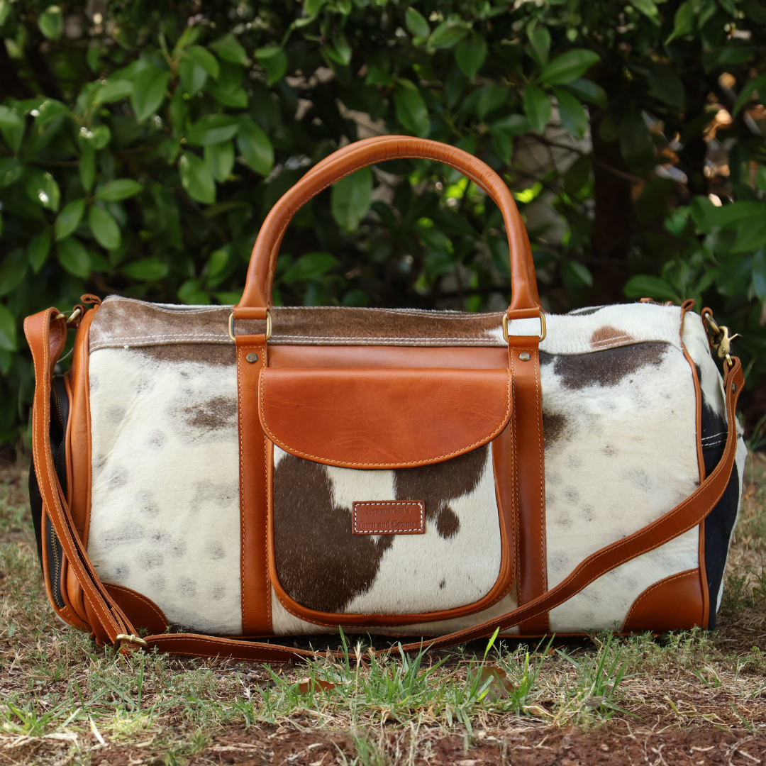 This genuine leather product which has unique characteristics and textures of natural hide. No two pieces can ever be the same being natural and the markings are a feature of 100% premium natural cowhide leather bags. So whether you are going away for the weekend or jumping on the plane this wide opening and spacious cowhide overnight bag makes this the perfect get away bag.