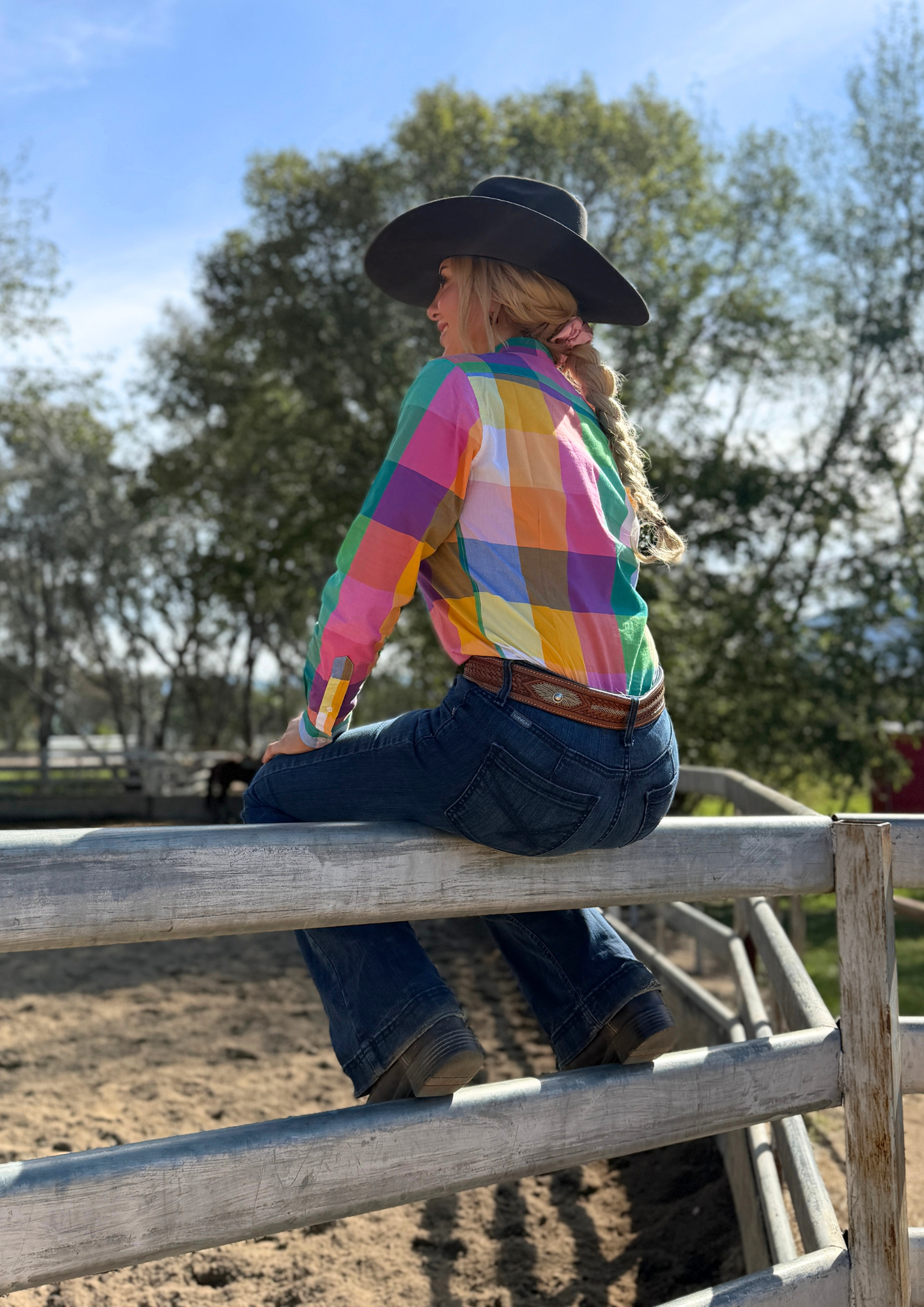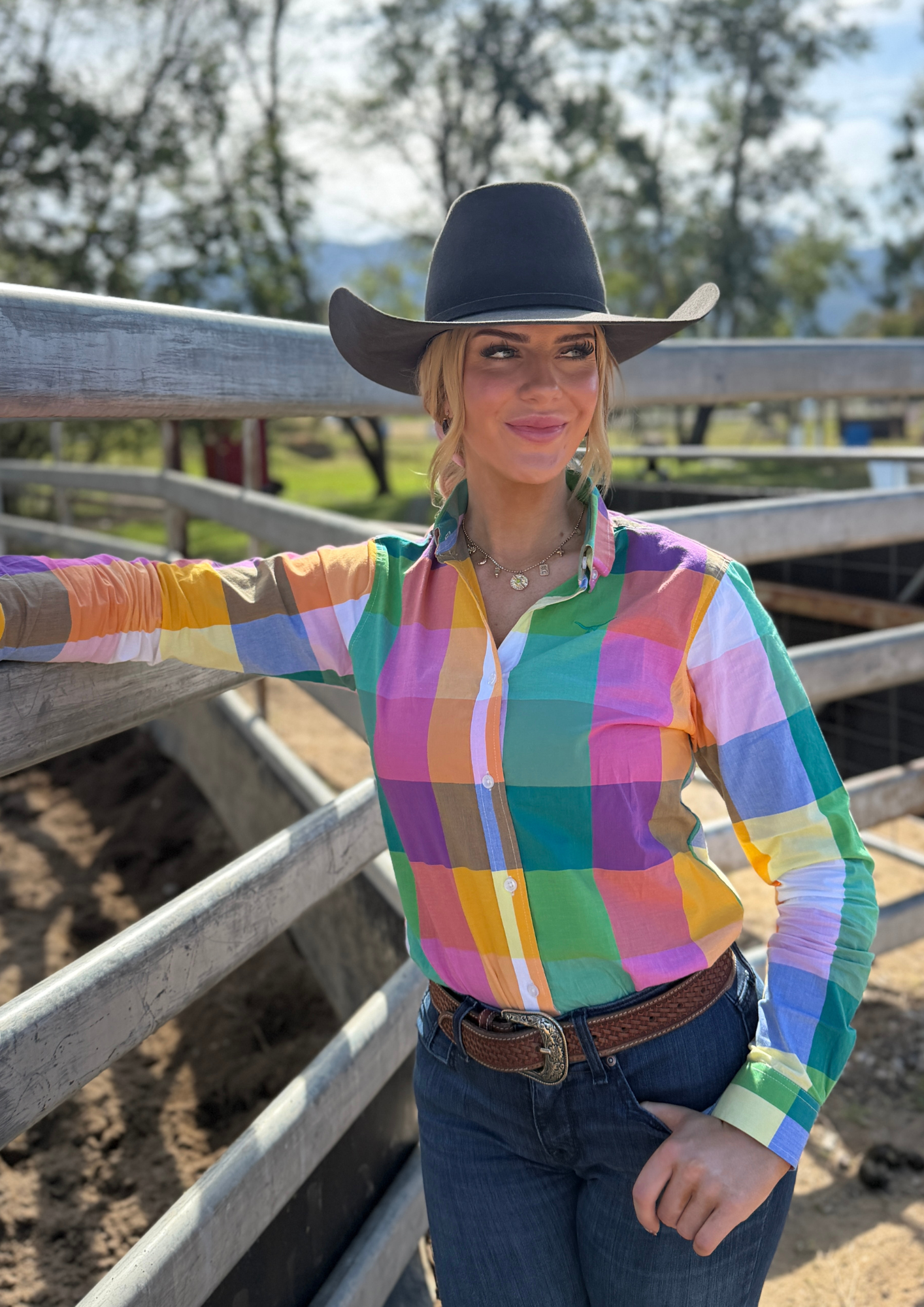 Featuring a bright, fun check print, bringing a fresh energy to a traditional style—made to stand out while still feeling classic. It’s an easy piece to dress up with your favourite denim for competition days or wear casually across the weekend.