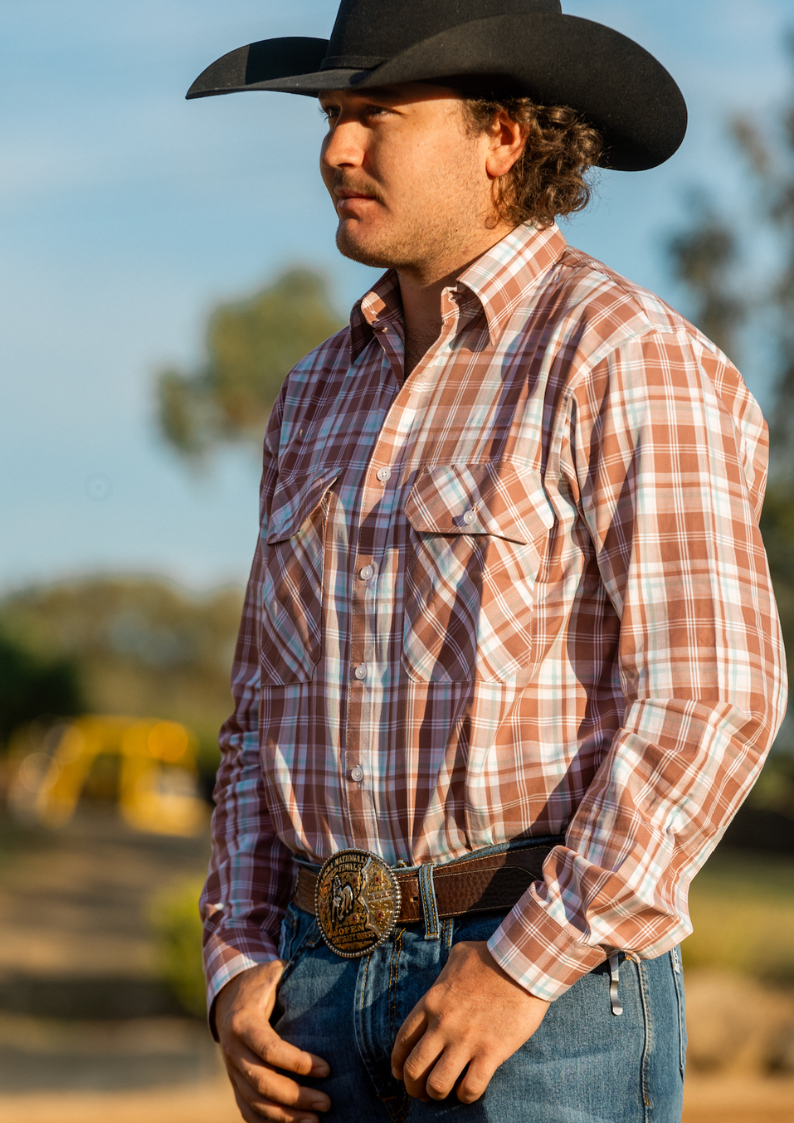 Whether you’re working on the farm, headed to the country races or competing at a campdraft, this versatile shirt is the perfect staple piece. Our double pocket Check Dress Shirts tick all the boxes. Made from 100% cotton for breathability, choose from a range of colours in our classic check print.