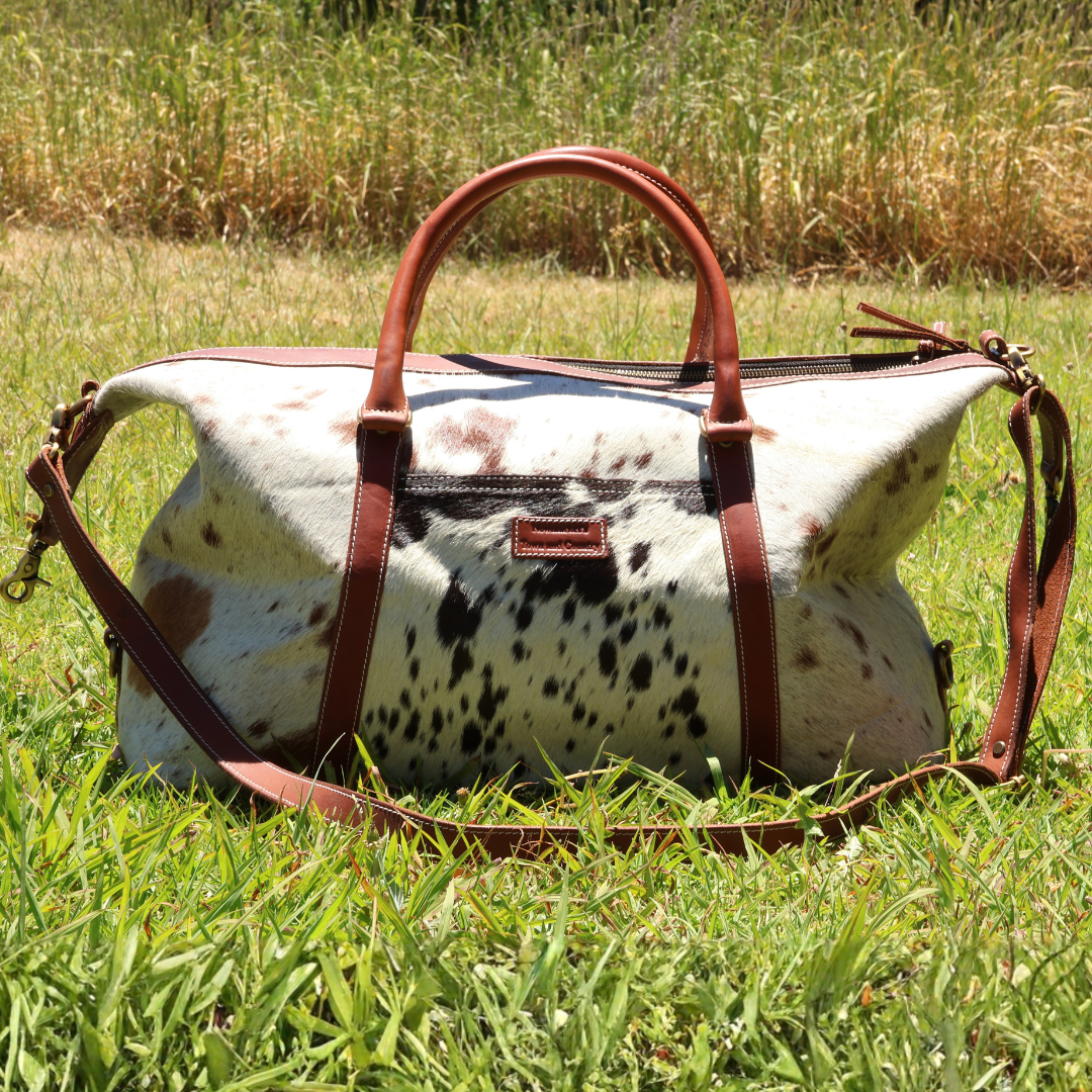 This genuine leather product which has unique characteristics and textures of natural hide. No two pieces can ever be the same being natural and the markings are a feature of 100% premium natural cowhide leather bags. So whether you are going away for the weekend or jumping on the plane this wide opening and spacious cowhide weekender bag makes this the perfect get away bag.