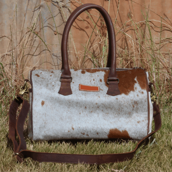 The Sadie bag is made from high quality genuine leather and cowhide feature. It features a leather handle as well as a adjustable leather shoulder and with zip closure.