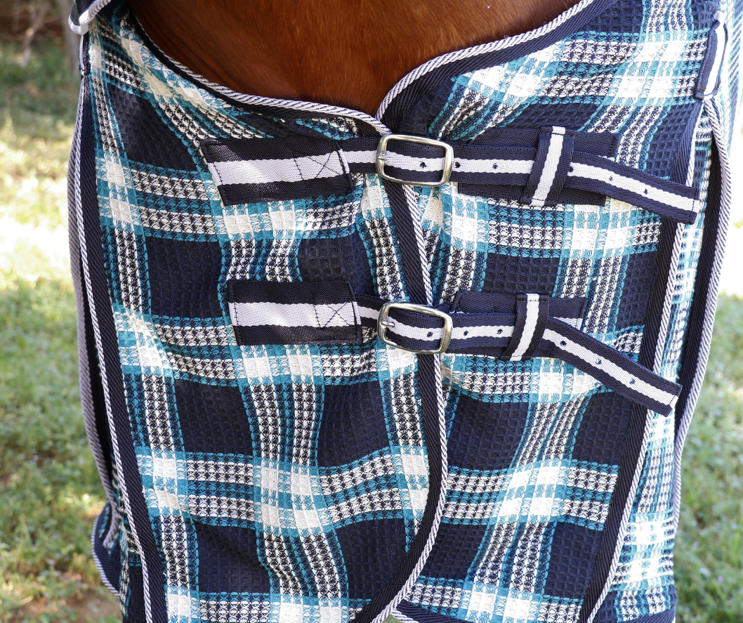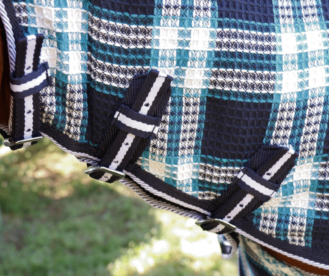 Our sell-out Deluxe 100% Cotton Cool Down Combos are back! These combos are designed for under rugs, transport, quick drying or general use. The 100% cotton honey comb material is incredibly breathable, moisture wicking and absorbs water, allowing your horse to dry in just 15 minutes.