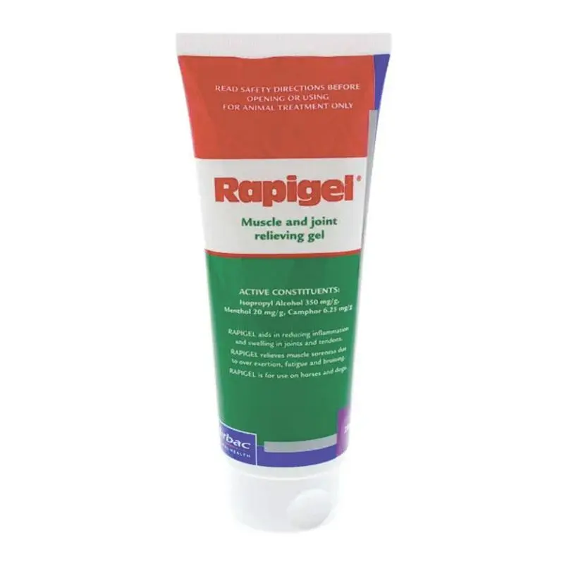 Rapigel aids in reducing inflammation and swelling in joints and tendons. Relieves muscle soreness due to over exertion, fatigue and bruising. Can be used on horses and dogs.
